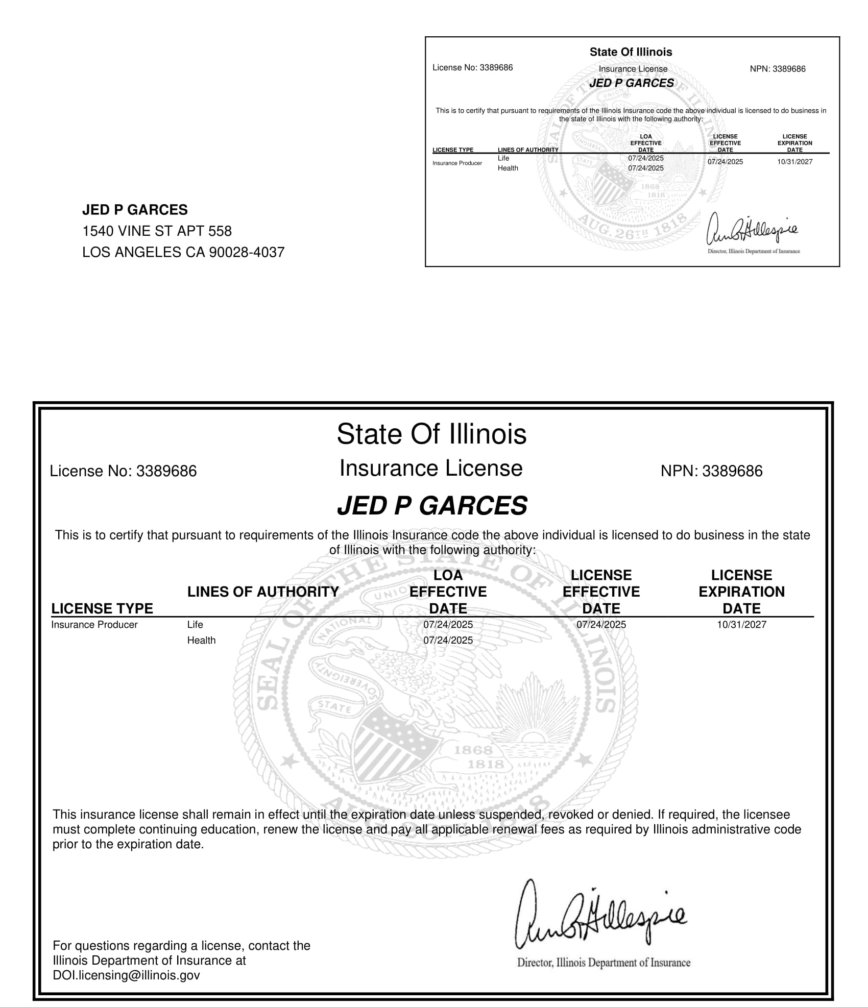 Jed Garces is a licensed insurance producer authorized by the Illinois Department of Insurance (IDOI). This credential signifies that Jed has successfully completed the rigorous pre-licensing requirements and state examinations necessary to serve residents across the state of Illinois.