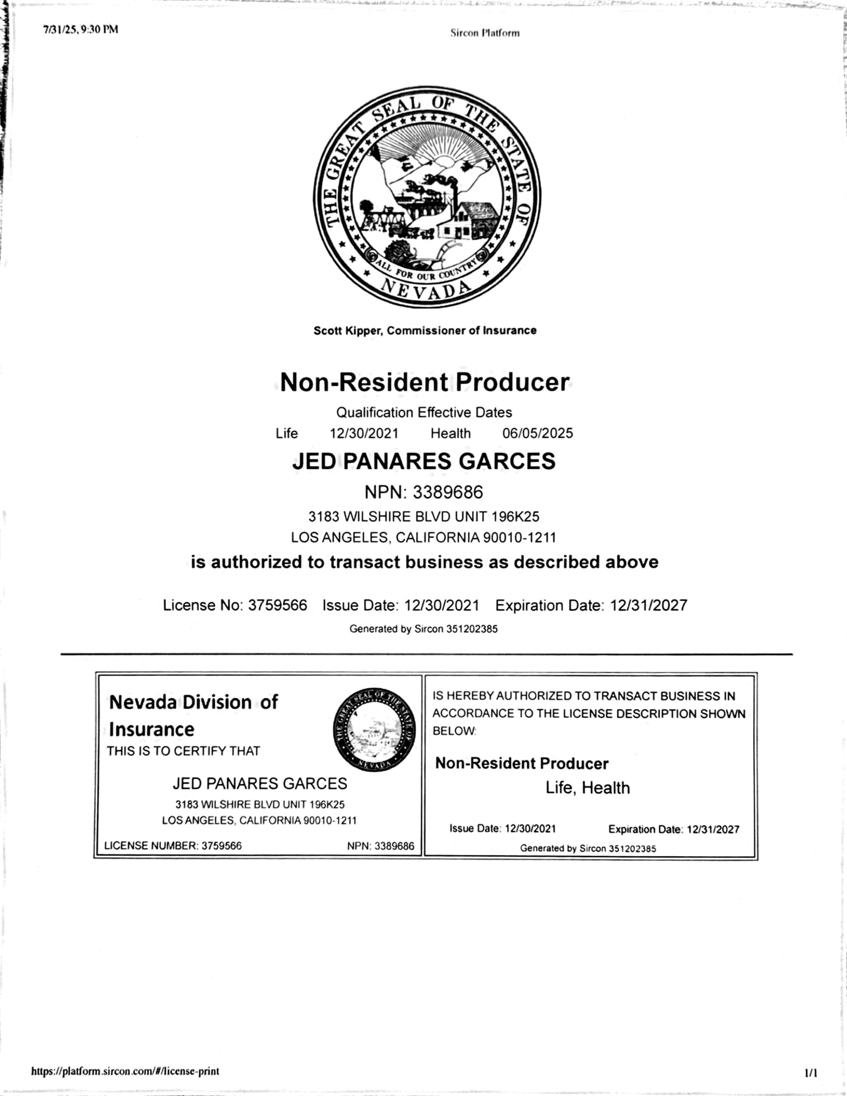 Jed Garces is a licensed insurance producer authorized by the Illinois Department of Insurance (IDOI). This credential signifies that Jed has successfully completed the rigorous pre-licensing requirements and state examinations necessary to serve residents across the state of Illinois.