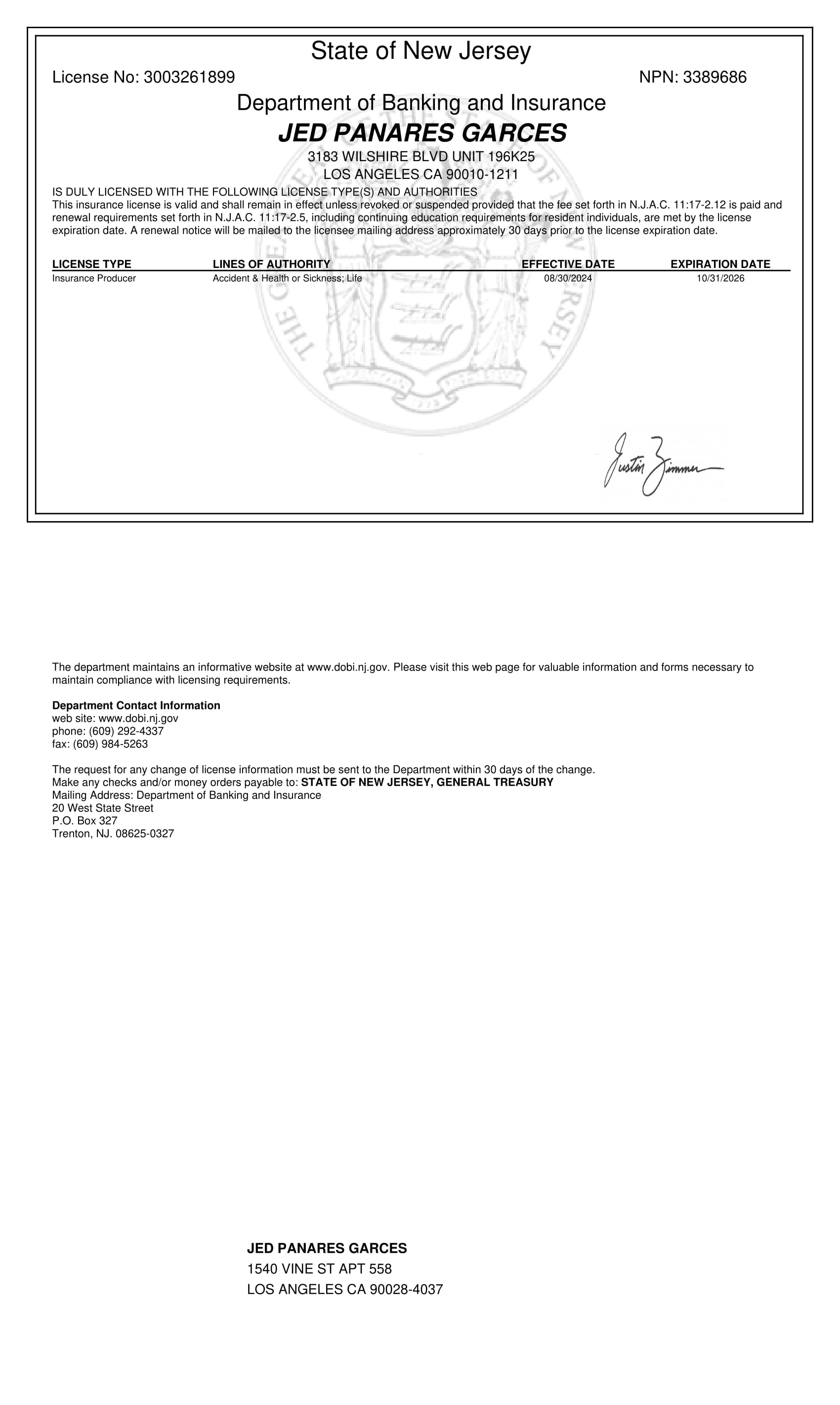 Jed Garces is a fully licensed insurance producer authorized by the New Jersey Department of Banking and Insurance (DOBI). This license is a mark of professional excellence, signifying that Jed has met the state’s high standards for insurance knowledge, ethical conduct, and consumer advocacy.